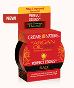 Infused with Argan Oil, Perfect Edges™ Extra Firm Hold Edge Gel smoothes & controls hard-to-tame edges, moisturizes, conditions & delivers exotic shine. This new & improved formula controls frizz & leaves no residue, making it great for creating sleek, smooth styles, ponytails, sculpting & styling the hair.